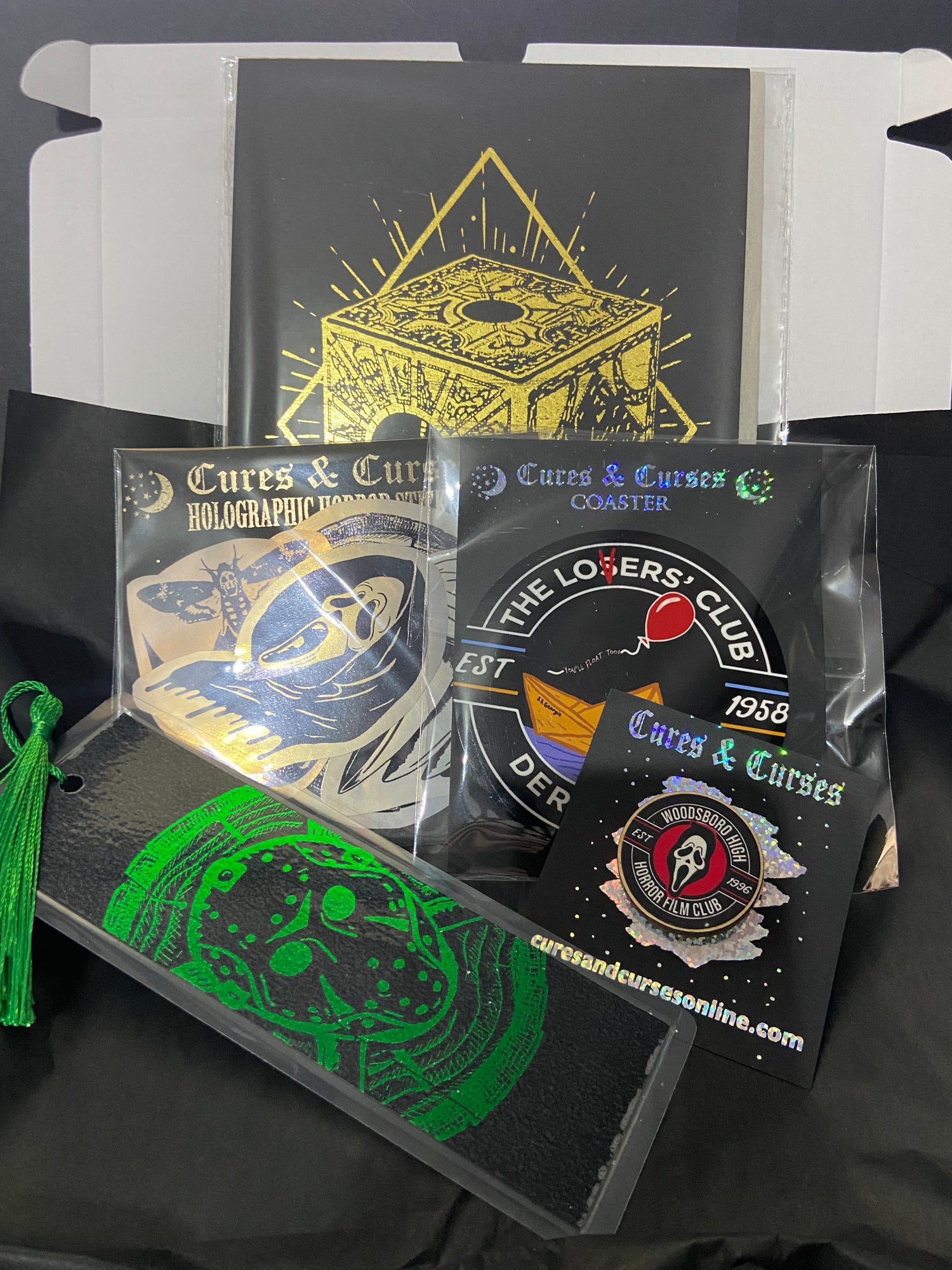 Offering a mysterious collection of items e.g. A5 prints, stickers, keychains, pins, bookmark, coaster for a discount bundle price, chose between our three themes, gothic, witchy or horror.